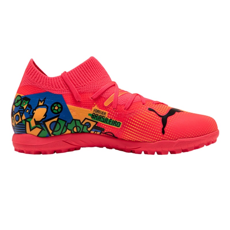 A chuteira Puma Future 7 Match Neymar Jr para futebol Society é a escolha ideal para os pequenos craques que sonham em seguir os passos do ícone brasileiro Neymar Jr. Com um design dinâmico e cheio de estilo, esta chuteira oferece o máximo em conforto e desempenho para os futuros talentos do futebol. Seu cabedal em material sintético proporciona durabilidade e leveza, permitindo movimentos ágeis e precisos em campo. O solado completamente emborrachado, com travas baixas e fixas, oferece excelente tração e estabilidade em diferentes tipos de superfície, garantindo segurança e confiança a cada passo. O fechamento por cadarços, com o auxílio de lingueta e colarinho elásticos, proporciona um ajuste personalizado e seguro, mantendo o pé firme e estável durante toda a partida. As palmilhas em EVA removíveis oferecem conforto e amortecimento, adaptando-se ao formato do pé e proporcionando suporte em cada movimento. Indicada especialmente para o futebol infantil, a Puma Future 7 Match Neymar Jr é a parceira perfeita para os pequenos jogadores que estão começando a dar os primeiros passos no mundo do futebol, assim como o próprio Neymar Jr fez na infância.