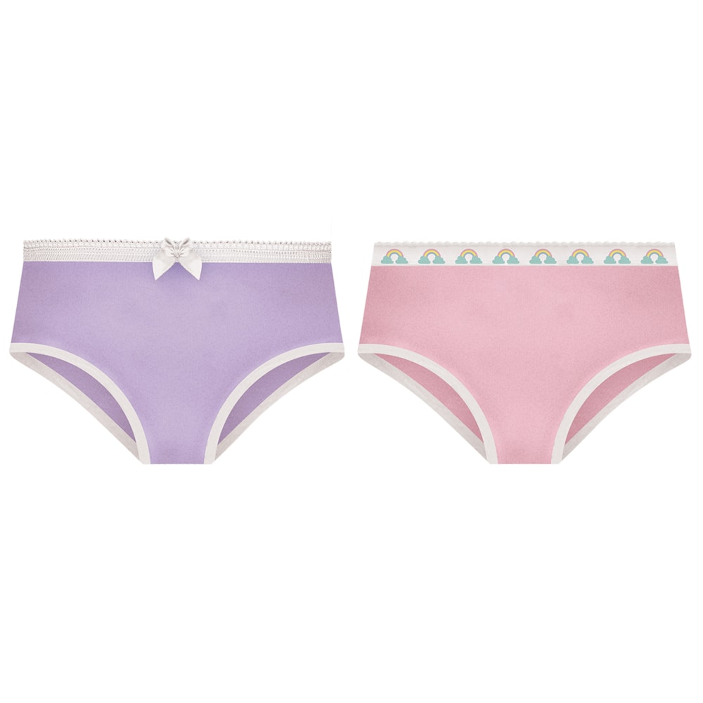 Com o Kit 2 Calcinhas Selene Infantil as mocinhas vão ficar mais seguras e confortáveis no dia a dia. O modelo foi confeccionado totalmente em algodão, o que traz mais conforto durante o uso. Possui o cós elástico e conta com uns detalhes nele que traz um charme para a peça. Medidas Aproximadas (cm): PP (1 a 2 anos): 20 x 15 / P (3 a 5 anos): 22 x 17 / M (6 a 8 anos): 24 x 19 / G (9 a 10 anos): 26 x 21 / EG (11 a 12 anos): 28 x 23.